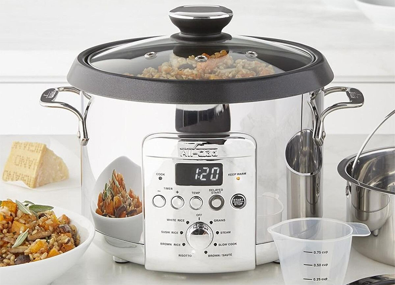 Nồi áp xuất Đây là một mẫu nồi giúp bạn có thể nấu chín nhiều món ăn, tích hợp nhiều chế độ nấu ăn với khả năng hẹn giờ linh hoạt, sử dụng dễ dàng. Không giống với những sản phẩm khác, nồi áp xuất hoạt động với nhiều nguyên lý chuyển hóa thành nhiệt năng giúp tăng áp xuất trong nồi, khiến cho đồ ăn mềm ngon hơn. Thời gian nấu ăn sẽ rút ngắn chỉ còn vài phút hoặc vài tiếng. Không gian nồi đucợ thiết kế kín, vì thế các dưỡng chất trong thước ăn được giữ nguyên hương vị. |